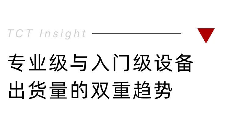 就全球3D打印设备出货量而言,高端级和入门级呈现出了截然不同的趋势。至关重要的工业级价格段,新设备出货量放缓,专注于工业级的企业,尤其是海外企业,开始退后一步审视自身财务状况,许多企业着手进行了筹划已久的整合。相反,以消费者为核心的入门级市场持续加速,专注于入门级的企业当下正蓬勃发展。