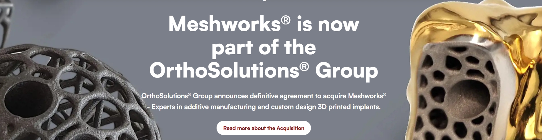 2025年1月22日,足踝市场的全球医疗器械领导者 Ortho Solutions 宣布,已签署具有最终约束力的协议,收购了 Meshworks(前身为 Alloyed 集团公司的一部分)。
