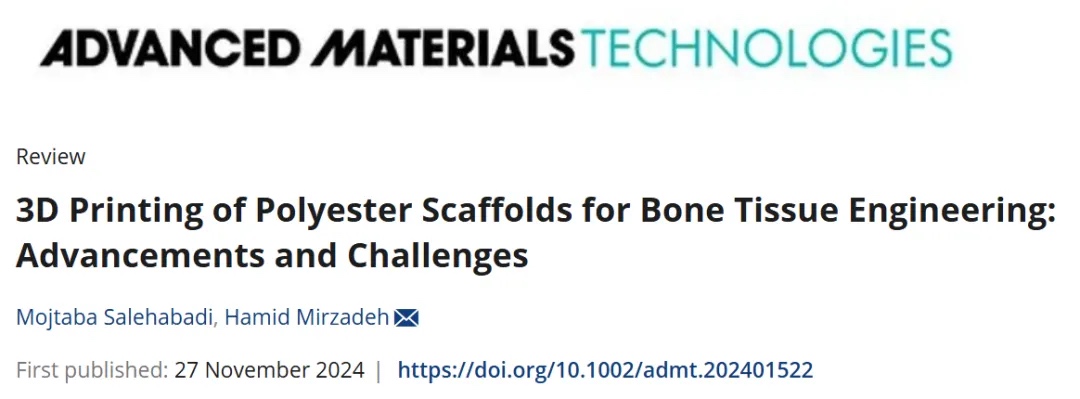 近期,阿米尔卡比尔技术大学Hamid Mirzadeh等重点介绍了3D打印BTE聚酯基支架的最新进展和挑战,旨在提供未来的研究方向和潜在的解决方案,以克服3D打印聚酯基支架在BTE中的局限性。