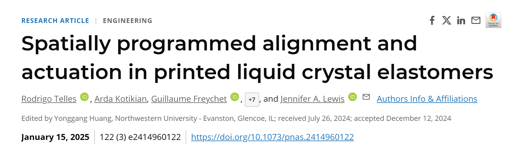 printed liquid crystal elastomers”的论文发表在《美国国家科学院院刊》上,资深作者是哈佛大学应用科学与工程学院