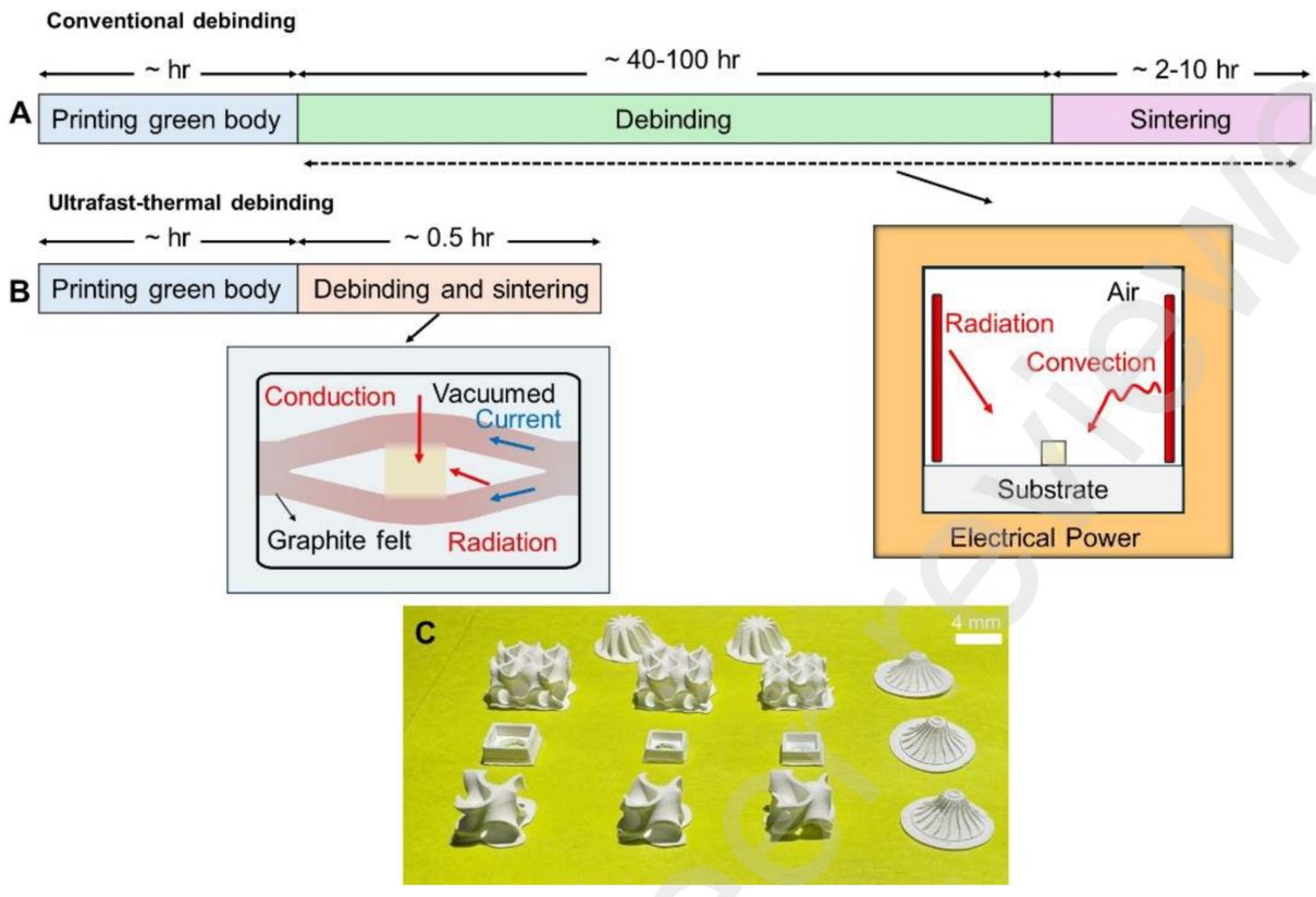 △(A)- (B)工作概述:传统热脱脂与超快速热脱脂(UFTD);(C)打印件