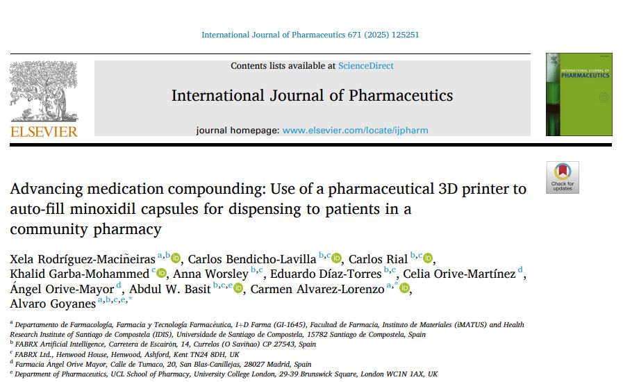 pharmacy(推进药物配制:使用制药 3D 打印机自动填充米诺地尔胶囊,分发给社区药房的患者)。研究展示了自动化药物封装技术的革命性突破,预示着复合药物生产将迎来效率、安全与成本控制的全面提升。