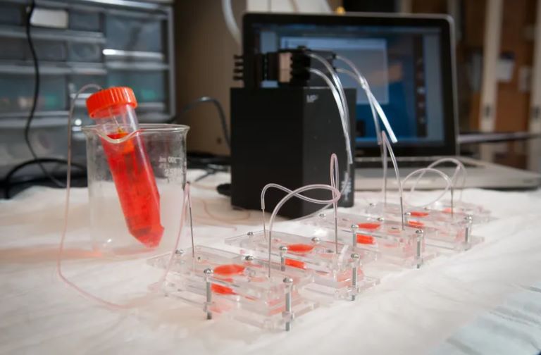 Murphy博士补充道:“整个微芯片大小仅为1×2英寸,新的OTE被安置在一个类似真实肺部结构的可渗透膜内,内部含有微小管道,空气可以通过这些管道流动。每个小管直径大约60微米,相当于一根头发的粗细。研究团队将含有有毒化学蒸气的空气泵入这些管道,以此来模拟吸入烟雾的情景。这使得毒素能直接与管内的细胞相互作用。”