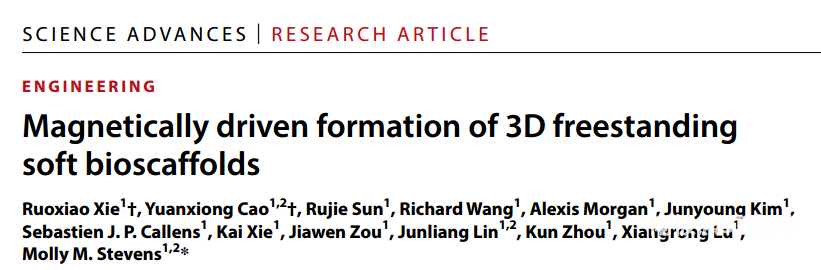 五、参考文献RuoxiaoXie et al. ,Magnetically driven formation of 3D freestanding softbioscaffolds.Sci. Adv.10,eadl1549(2024).DOI:10.1126/sciadv.adl1549