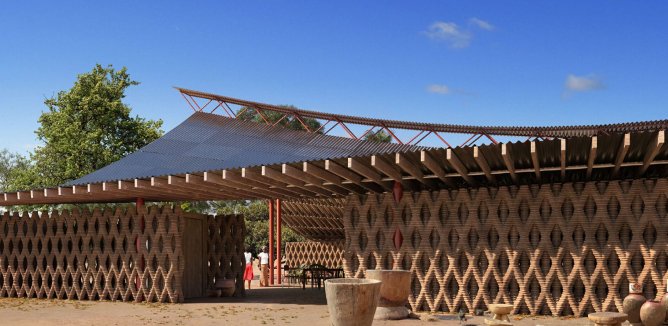建筑设计的核心是纵横交错的 3D 打印土墙塑造结构,将传统建筑材料与数字制造技术融为一体。顶棚由短木段制成,由加泰罗尼亚高级建筑学院(IAAC) 和工程公司Eckersley O'Callaghan共同设计,形成了一个横跨主厅的宽阔屋顶。设计团队还直接与当地社区合作,在整个施工过程中提供就业和实践培训。每段木材连接在一起,形成一个灵活的编织状表面,覆盖在中央钢制脊柱上,提供结构支撑。波纹金属板包层增加了耐用性,同时保持了空间的开放性和吸引力。内部可移动的隔断使大厅可以在较小的房间和较大的公共空间之间切换,以适应不同的需求。