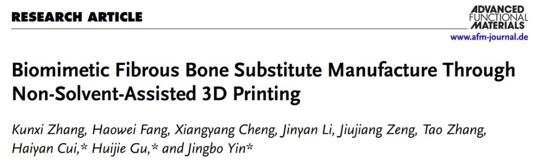 Functional Materials》,论文题目为“Biomimetic Fibrous Bone Substitute