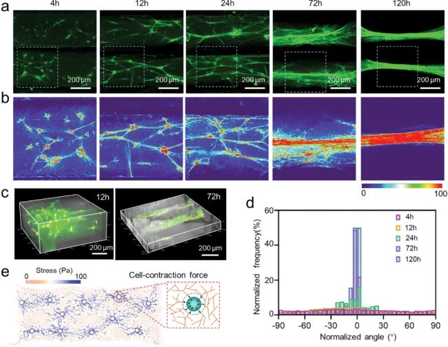 article_fibrin_4图4 “InterPore”支架内细胞介导的纤维蛋白水凝胶各向异性重塑微观演化过程