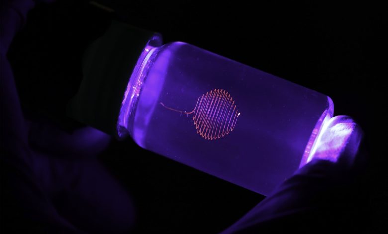 研究人员采用了一种溶剂交换方法来抑制表面张力引起的毛细管断裂。Hossain说:“我们修改了凝胶和打印墨水,这样墨水一沉积在凝胶中就会固化。这可以防止细丝断裂,因为它几乎瞬间就凝固了。”通过这种方法,该团队实现了