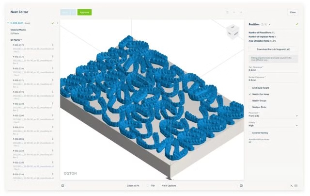 Oqcam表示,它们的主要技术优势之一在于自动化数据准备功能,能够将设置时间缩短高达98%,从而允许牙科技术人员将注意力集中在高价值任务上,而无需手动准备文件。此外,机器生产率增强功能通过实现更密集的嵌套、更快的打印速度和更简便的支撑移除,有效翻倍提升了机器的吞吐量。Oqcam的软件设计具有可扩展性,能够支持从小型牙科实验室到大型生产中心的各种规模运营,确保了完全的可追溯性和简化的工作流程。