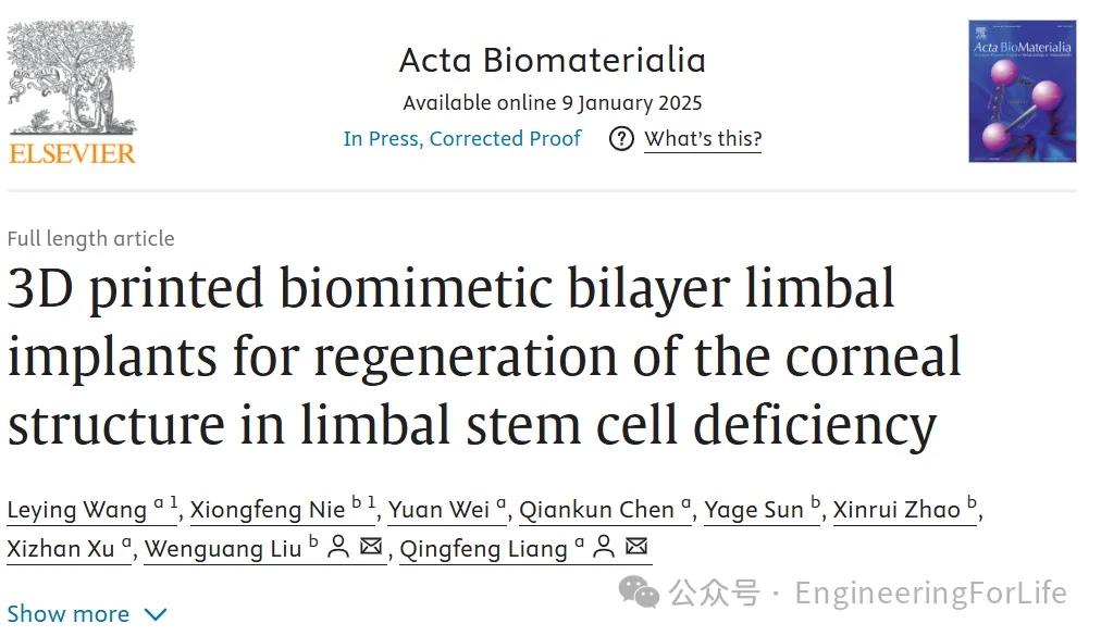 总体而言,该研究强调了角膜缘微环境重塑在治疗角膜缘干细胞缺陷中的重要性以及3D打印在治疗角膜疾病方面的潜力。