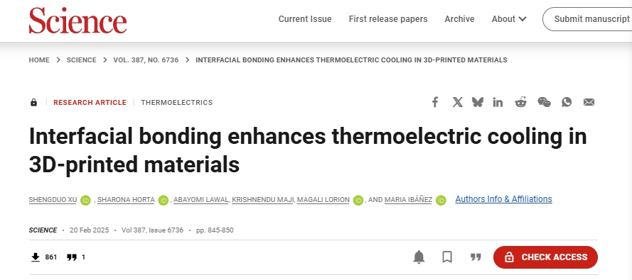 Xu强调:“3D打印技术的融入不仅提高了热电冷却器的制造效率,而且减少了材料浪费,为热电冷却器的广泛应用铺平了道路。”Ibáñez:“表示,与之前3D打印热电材料的尝试相比,目前的方法可以生产出性能更高的材料。凭借商业级性能,我们的工作有可能超越学术界,具有实际意义,能够吸引那些寻求创新解决方案人群的关注和兴趣。”
