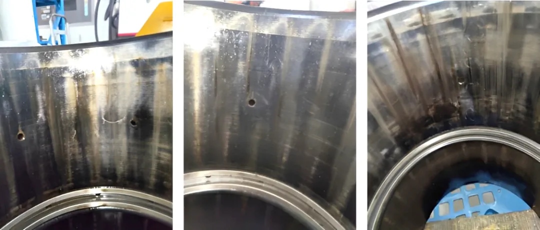 中科煜宸优选满足工艺要求的合金粉末用于行星架轴径工作面激光熔覆。对于尺寸缺失较多的行星架,采取层间冷却多次熔覆方式严格控制质量缺陷以满足熔覆层尺寸要求,外观及探伤检测无裂纹、夹杂、气孔、未熔合等缺陷。