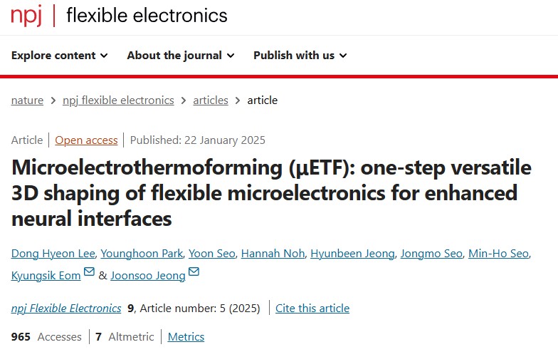 2025年2月27日,南极熊获悉,来自釜山国立大学的研究人员提出了一种一步式微电热成型 (μETF)方法,创建具有 3D 微结构的柔性神经接口。他们的研究结果表明,这种方法可以改善神经记录和刺激,并有可能应用于人工视网膜设备和脑机接口。