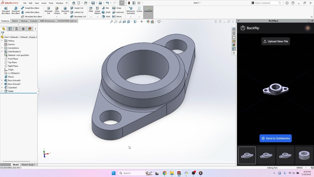 Backflip的SOLIDWORKS插件能够将3D扫描数据直接转换为具有完整特征历史记录的原生